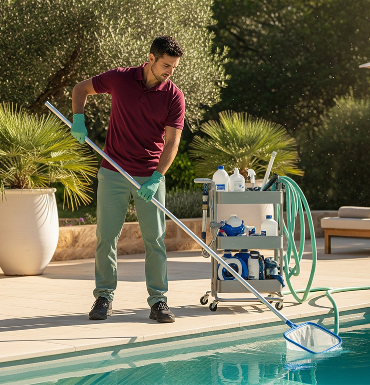 Sabemos que en verano las piscinas en Formentera necesitan atención especial. El control de algas es imprescindible así como el aseo de las zonas comunes. Todo estará bajo control con nuestra supervisión. Servicios de jardinería, piscinas, poda, riego, casas particulares, turísticas, hoteles, restaurantes y demás negocios
